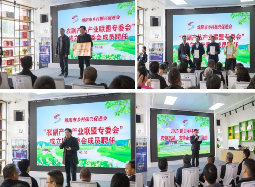 四川省扶贫基金会绵阳市分会、绵阳市乡村振兴促进会在绵阳市涪城区毅德商贸城乡村振兴农文旅特城市展厅隆重举行“2025助力乡村振兴—农特产品、农特企业推介交流会”及绵阳市乡村振兴促进会“农副产品产业联盟专委会”成立仪式。